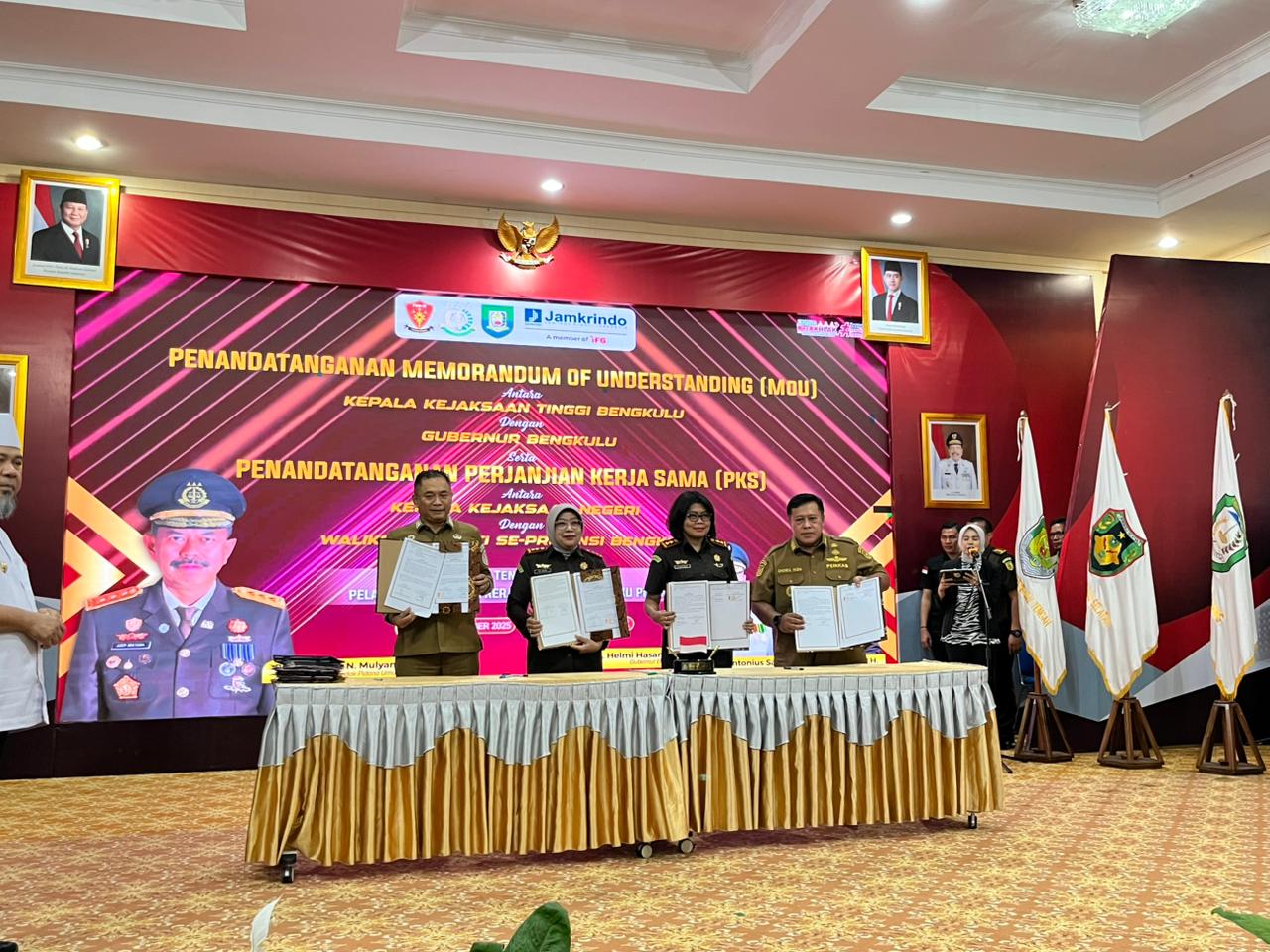 Penandatanganan Perjanjian Kerja Sama (PKS) antara Kepala Kejaksaan Negeri (Kejari) dengan para Bupati dan Wali Kota se-Provinsi Bengkulu.-IST/BE -